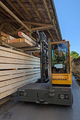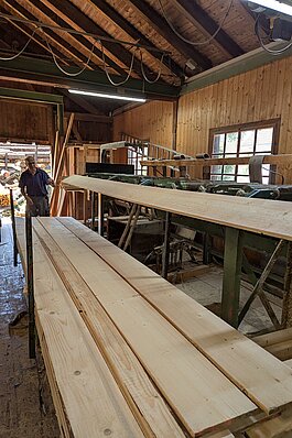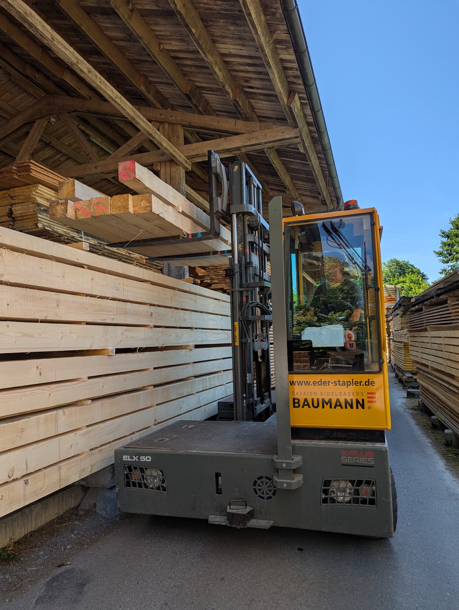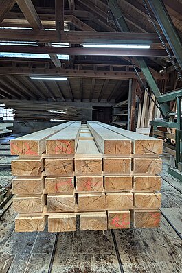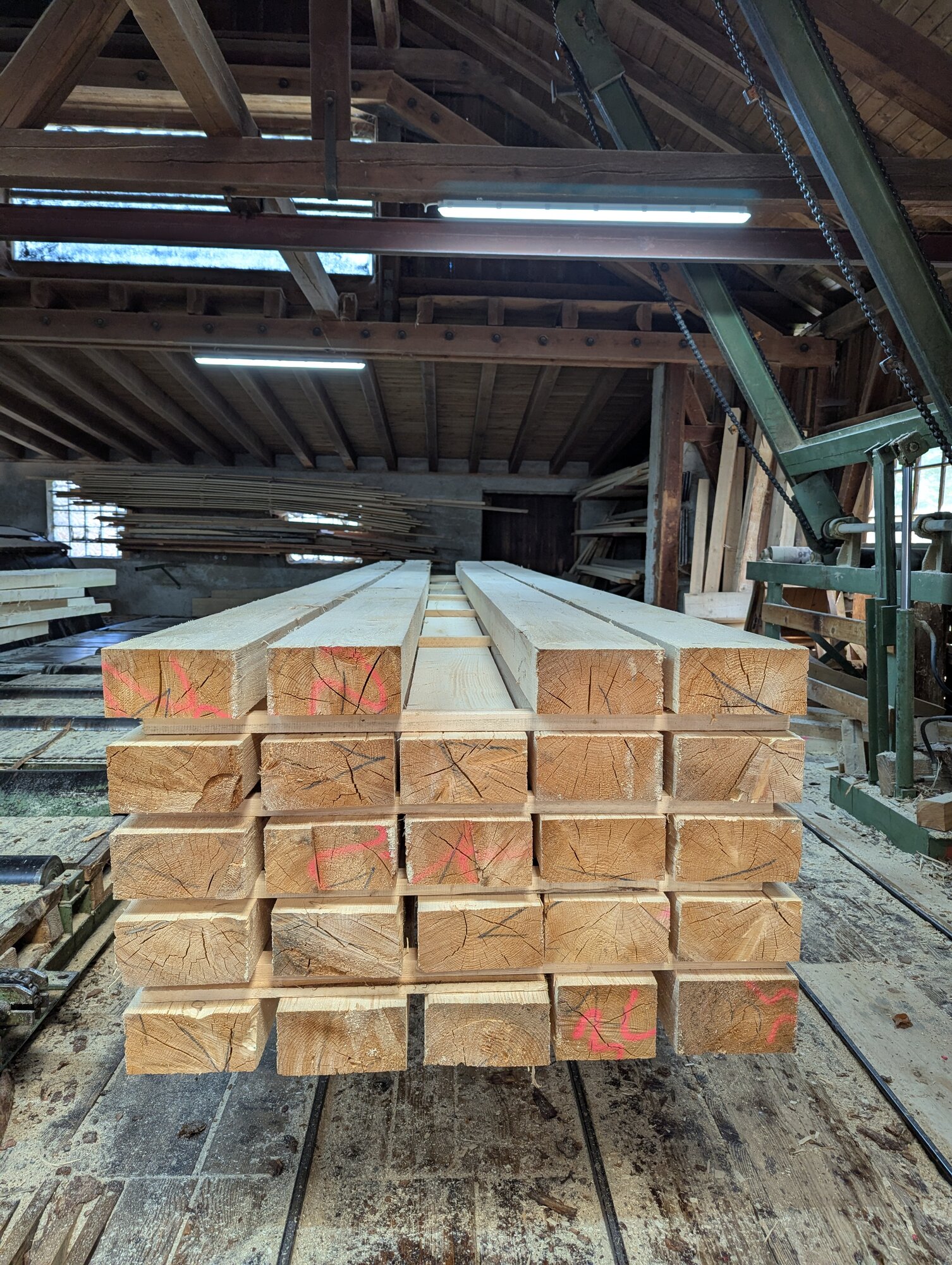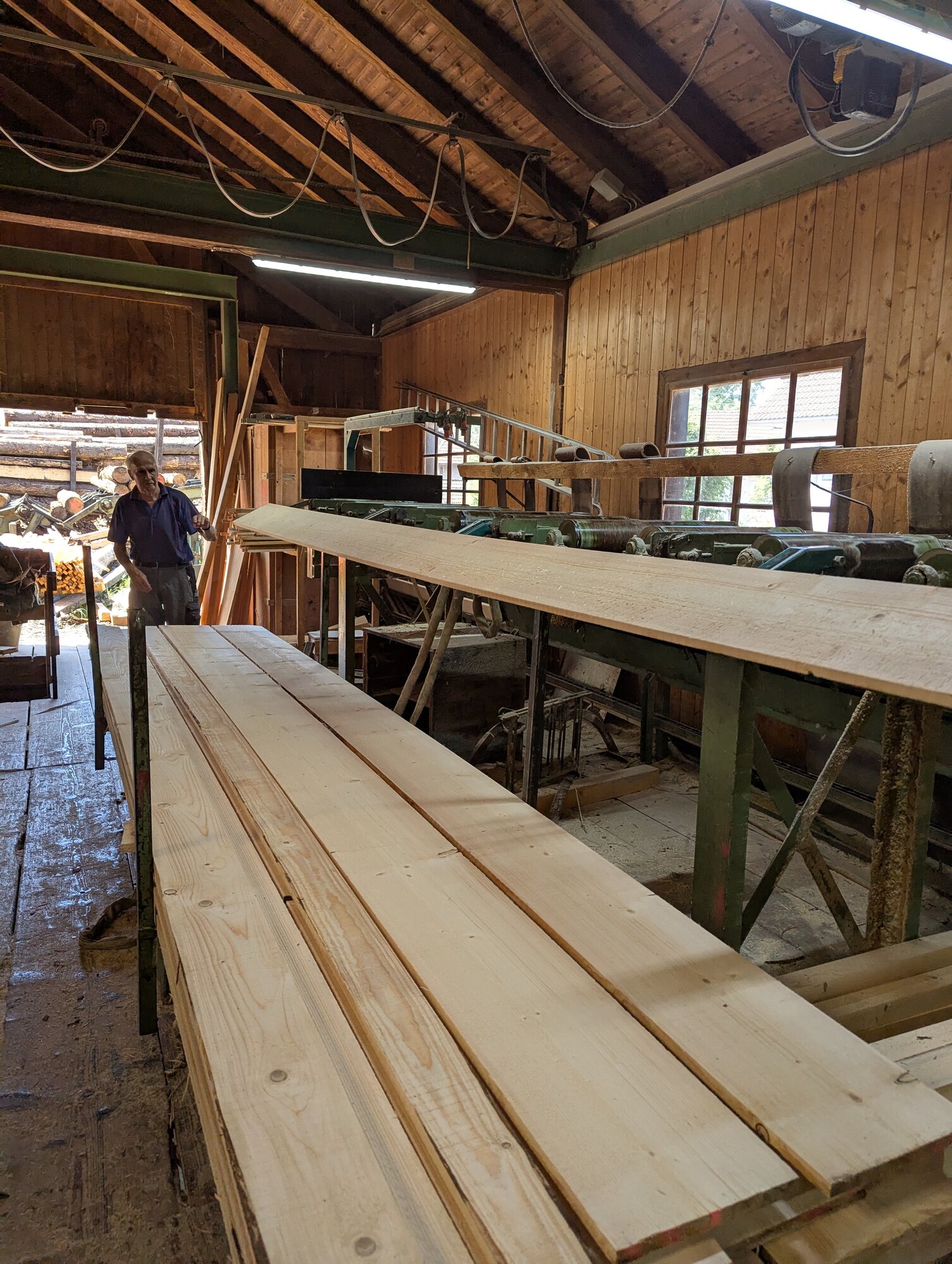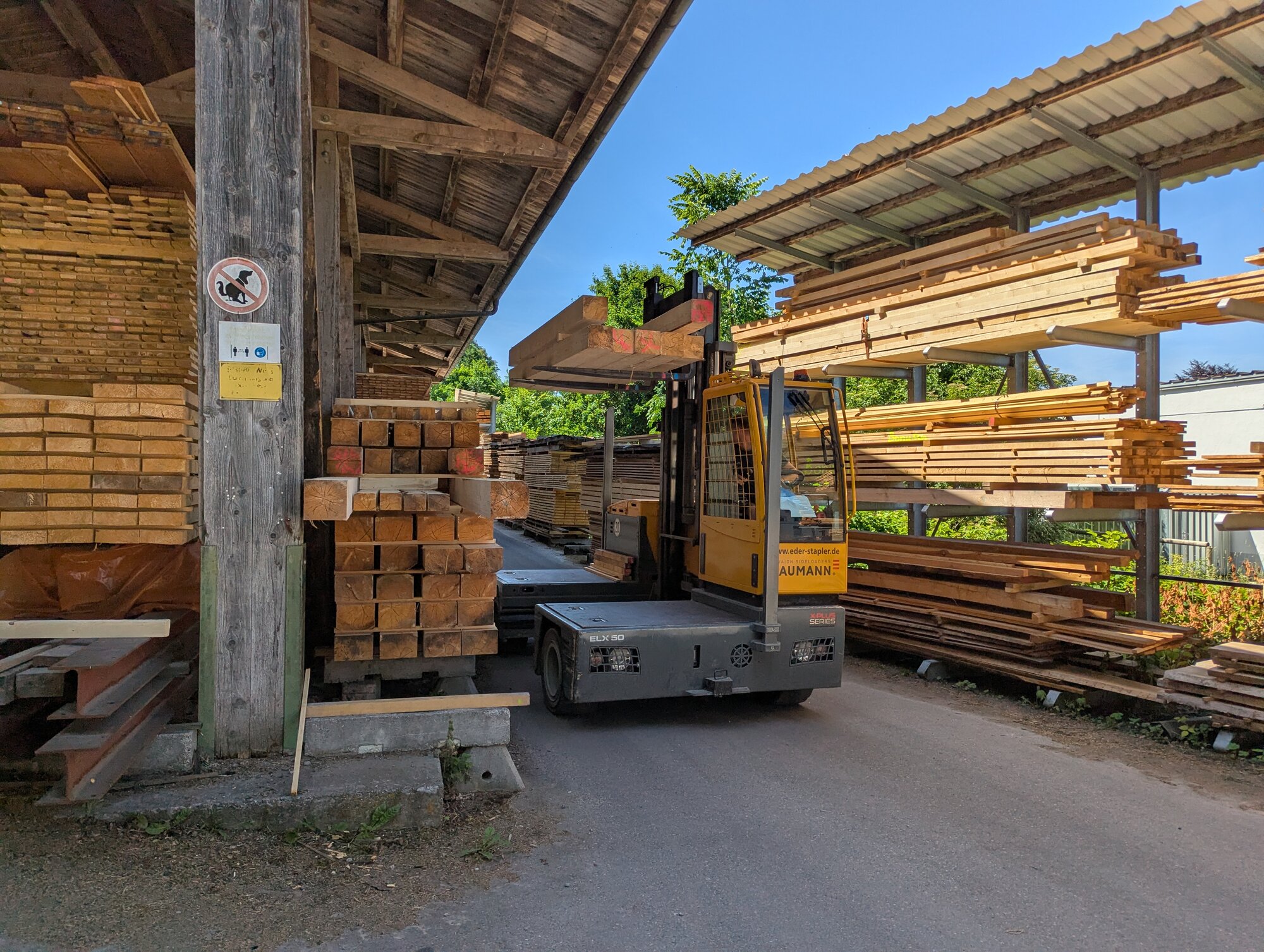 Je nach Bestellung wird das Holz noch getrocknet (siehe Trocknungen) und evtl. gehoblet. Bis zur Abholung wird Ihr Auftrag dann in der Schnittholzhalle gelagert.