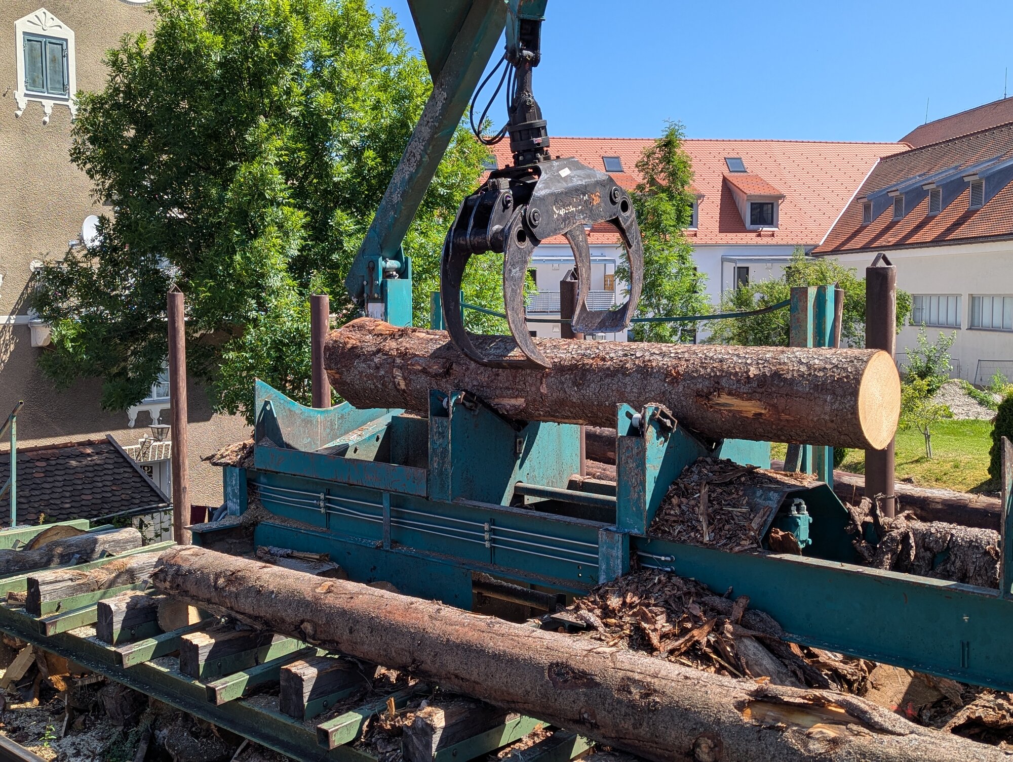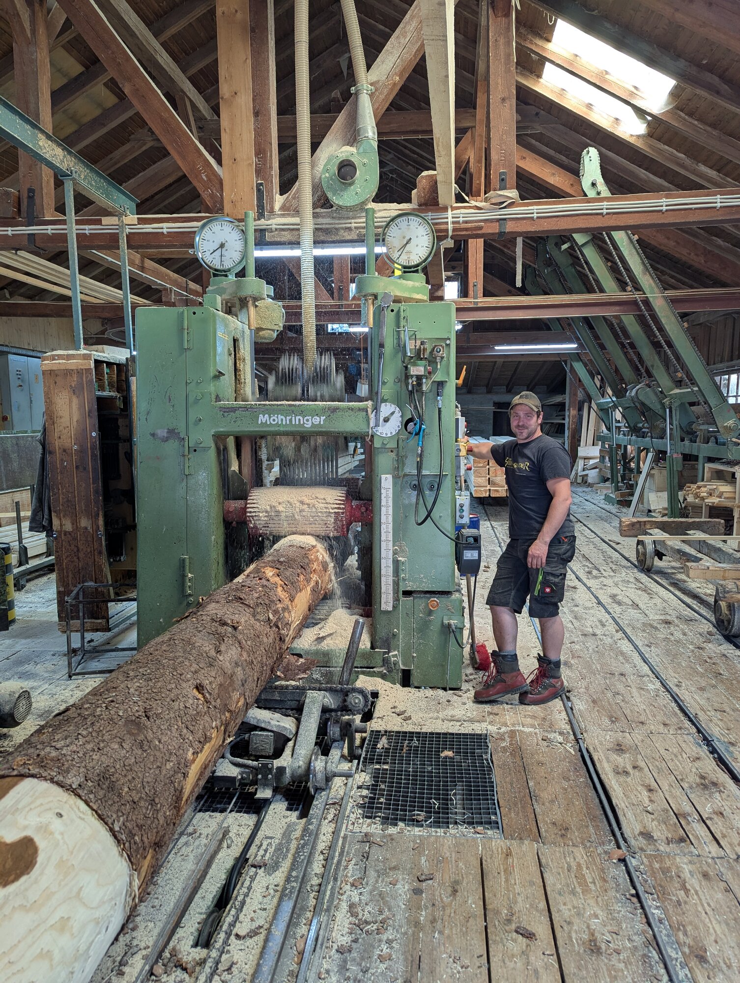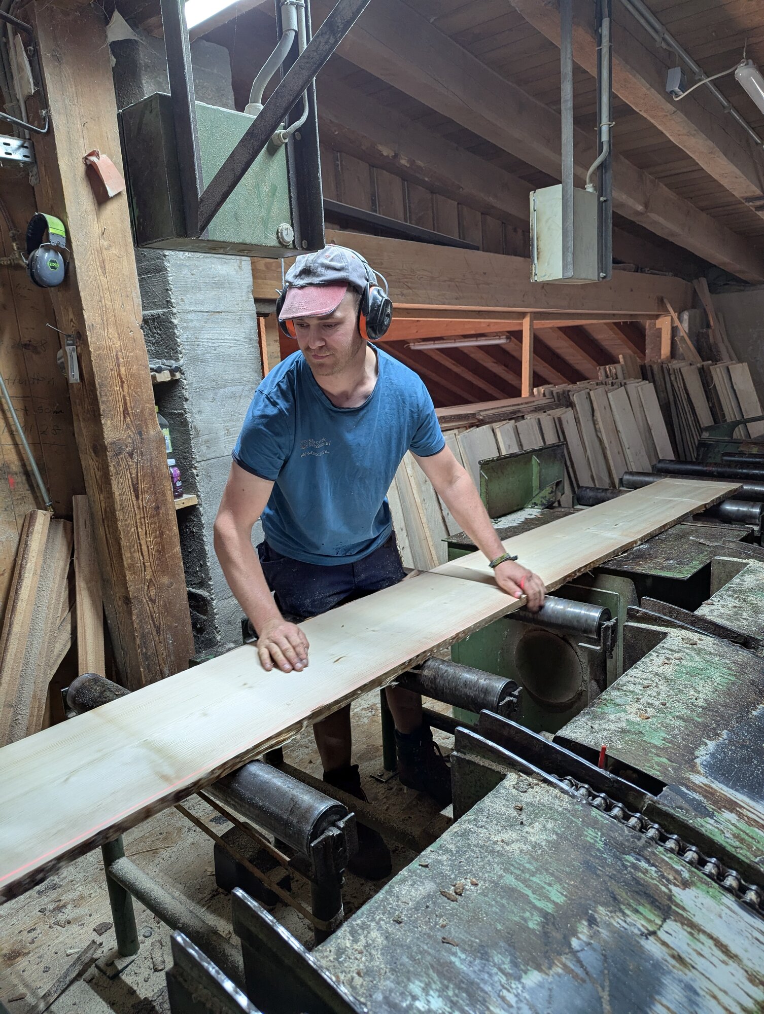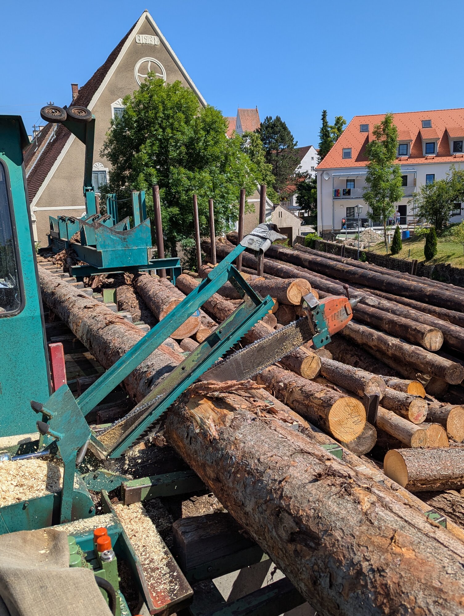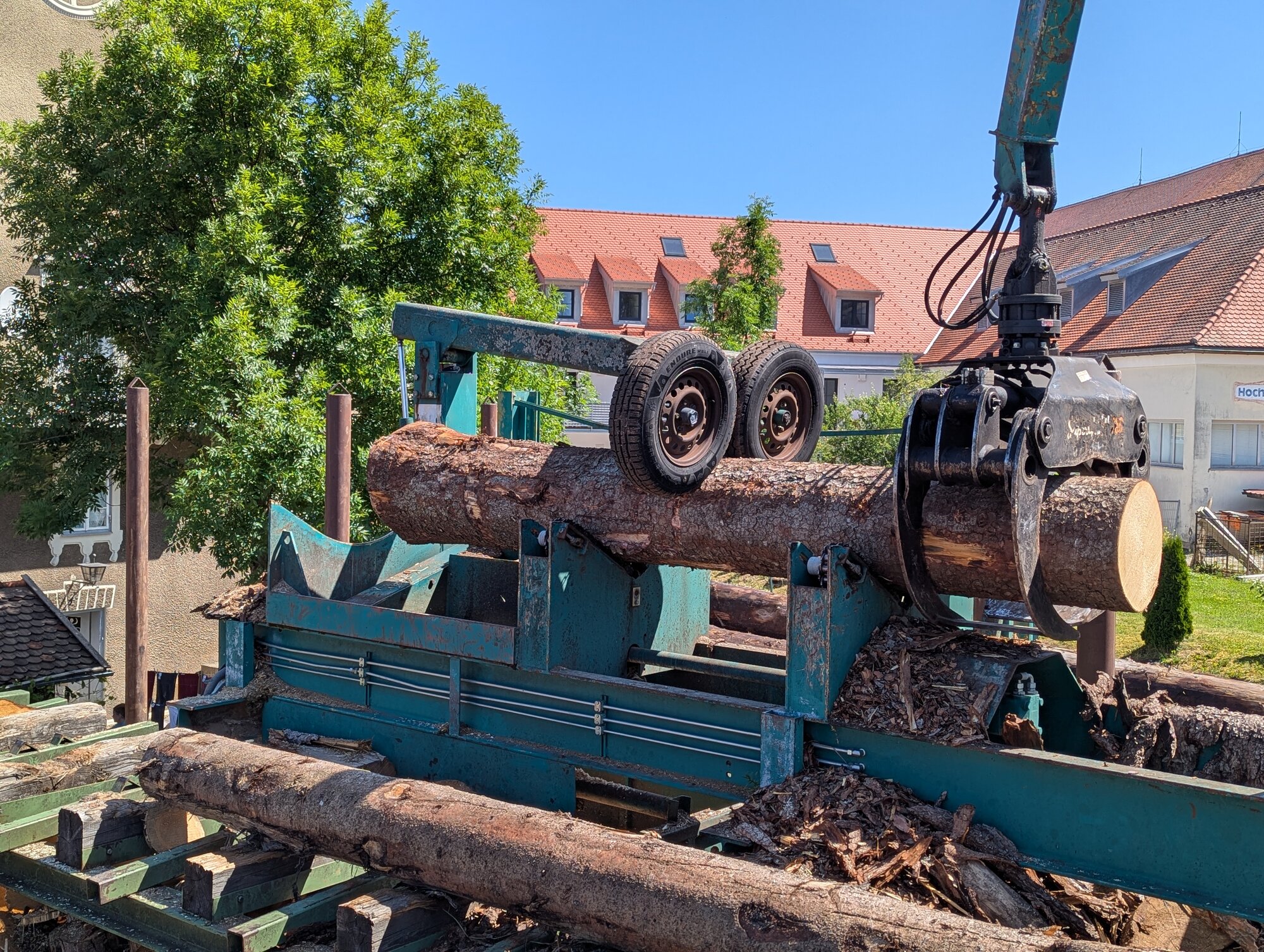 Unsere “Möhringer” Einschnittmaschine mit einem max. Durchlass von 70 cm hat eine Breitenverstellung, sodass sehr schnell die verschiedenen Maße eingeschnitten werden können. Saubere Schnittqualität und optimale Ausbeute sind dabei natürlich unser oberstes Gebot.