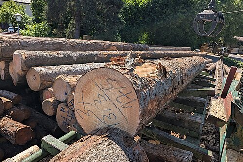 Länge, Zopfdurchmesser und Qualität des Stammes müssen genau zum späteren Schnittsortiment passen.