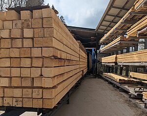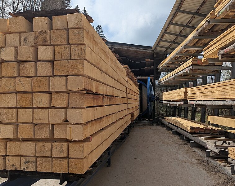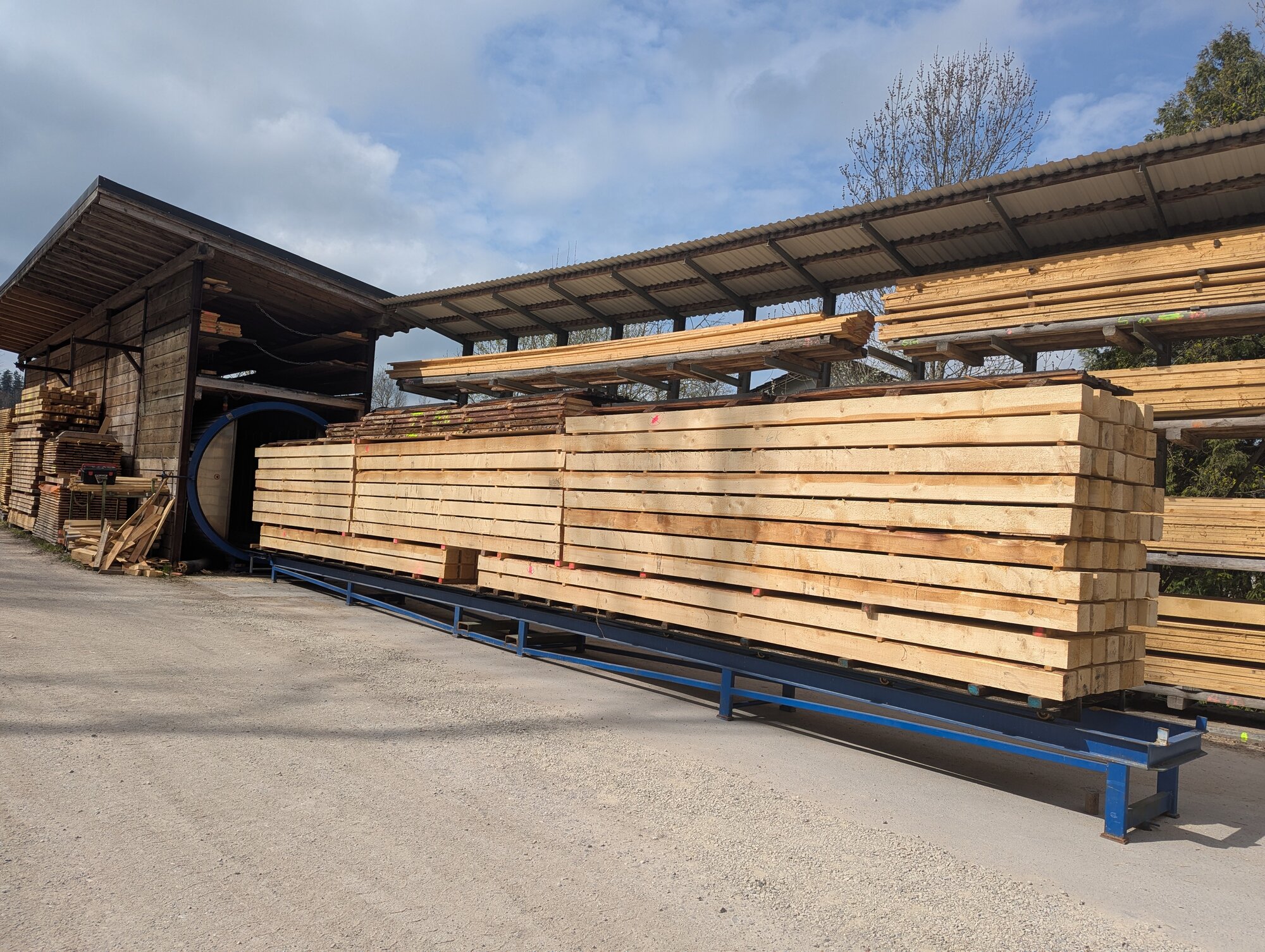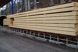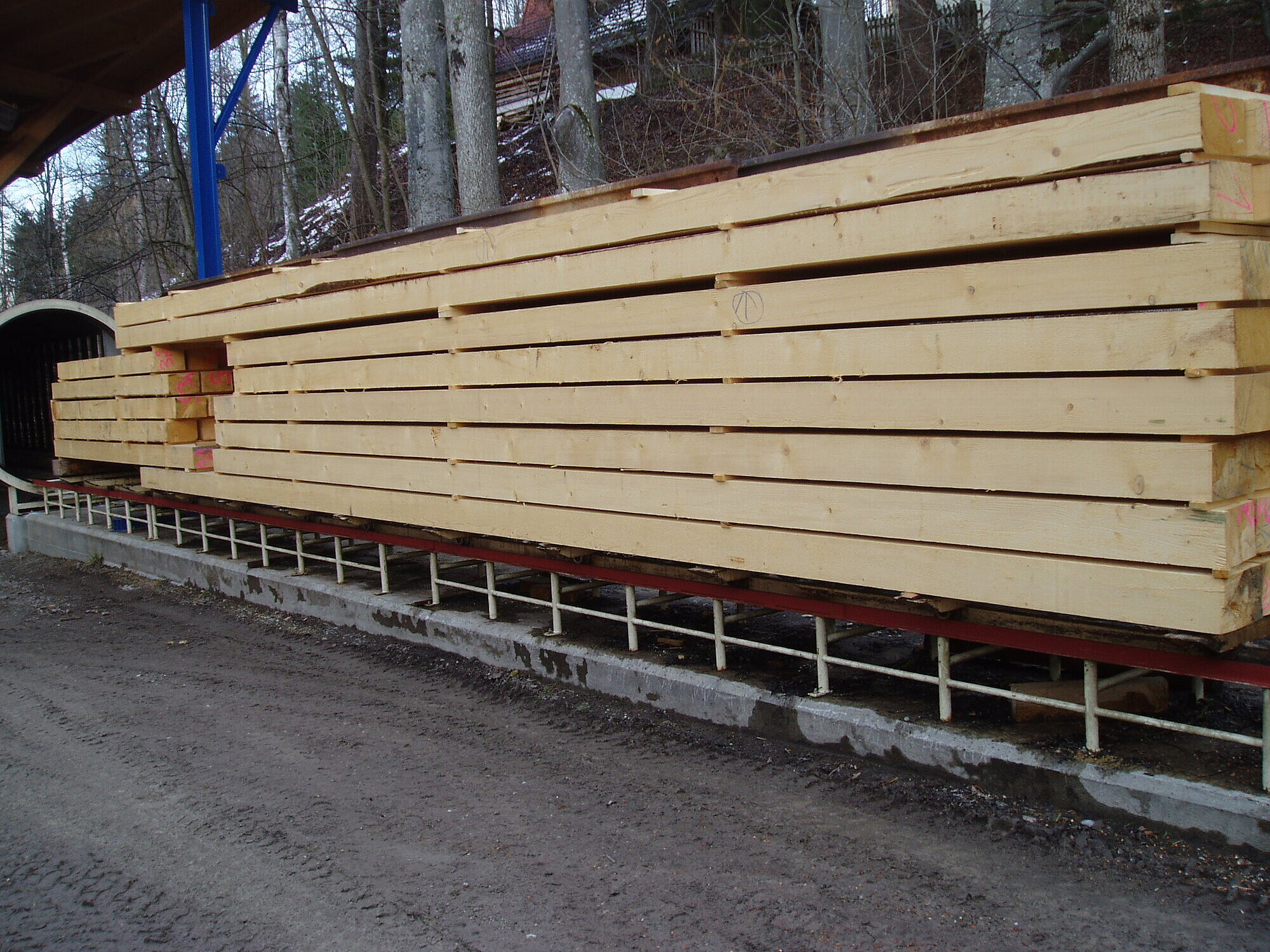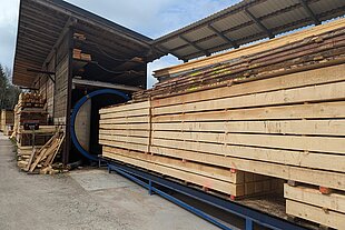 Das zu trocknende Holz wird durch Messställen ständig überwacht. Dadurch werden Temperatur und Feuchte innerhalb der Kammer angepasst und geregelt.
