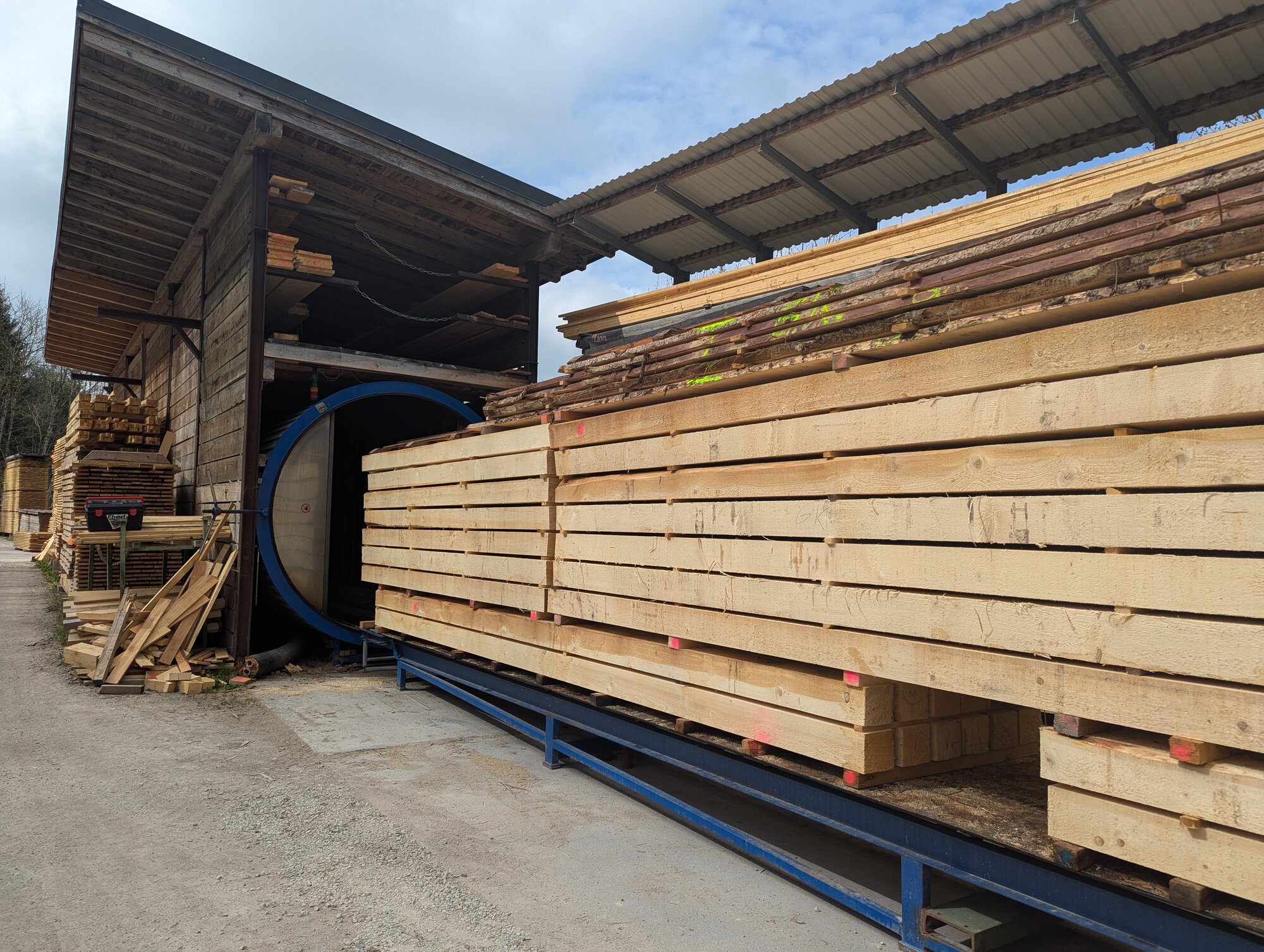 Durch das Vakuum wird der Siedepunkt im Wasser verringert. Dadurch kann das Holz bei niedrigen Temperaturen schonend getrocknet werden.